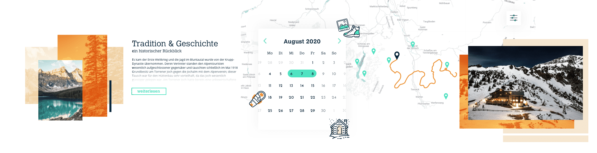 A significant part of this project focused on redefining the visual identity of the Carl von Stahl Haus and translating it into a cohesive digital experience. The goal was to move away from a generic, outdated appearance toward a clear, contemporary brand that reflects the hut’s alpine character while remaining practical and approachable. Design decisions around typography, color, imagery, and layout were guided by usability considerations as well as the environmental context of mountain tourism. The resulting visual language supports orientation, reinforces trust, and strengthens the overall user experience without overshadowing core tasks such as planning and booking.