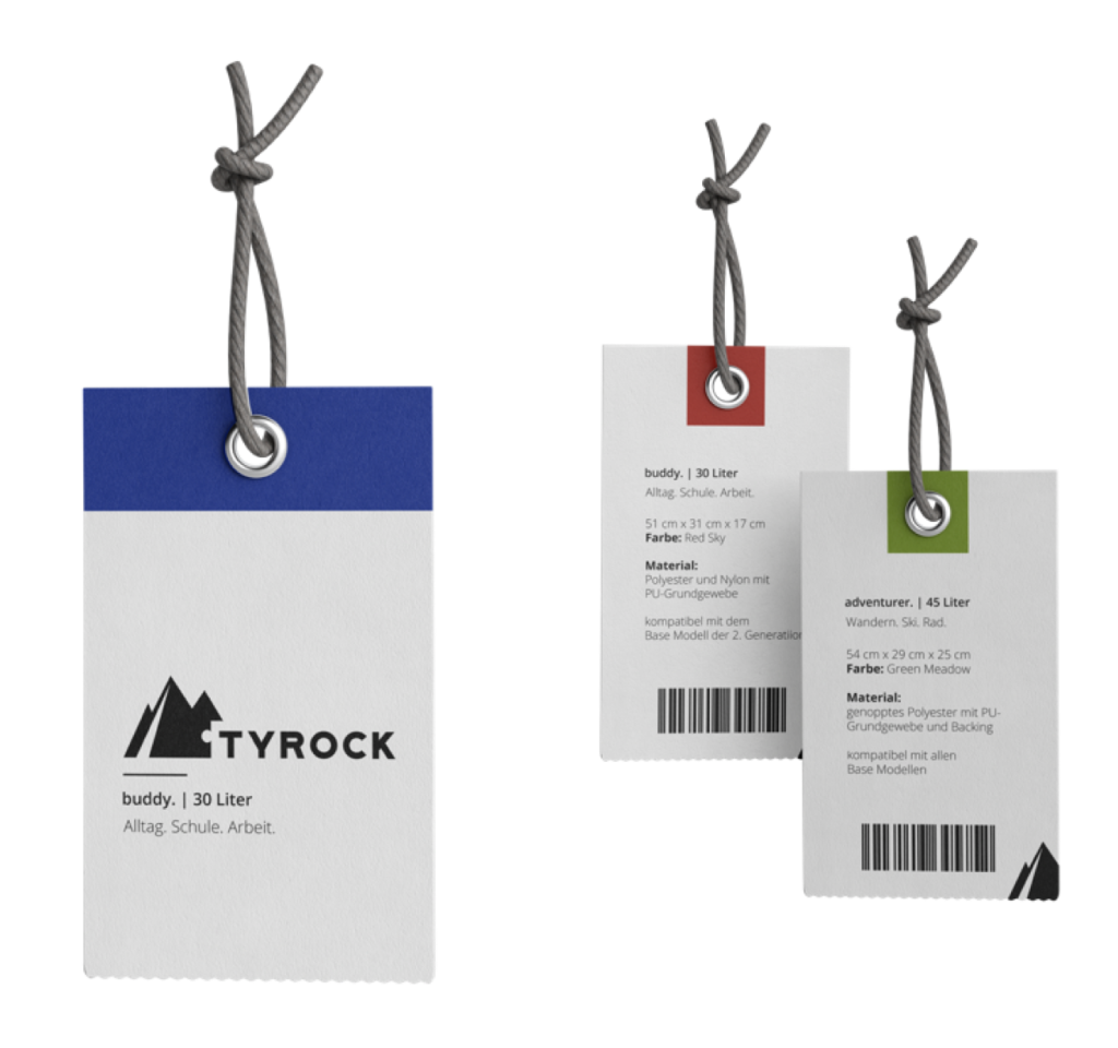 The startup specializes in outdoor products and would like to achieve a down-to-earth, adventurous, honest and strong impression. Furthermore, the brand should reflect the connection with nature and the mountains. The name Tyrock consists of “Tyrol” and “Rock”. The product of the company Tyrock is the modular backpack, which consists of a basic unit with straps and a backplate. Depending on the use, various extensions can be attached to this base unit.
