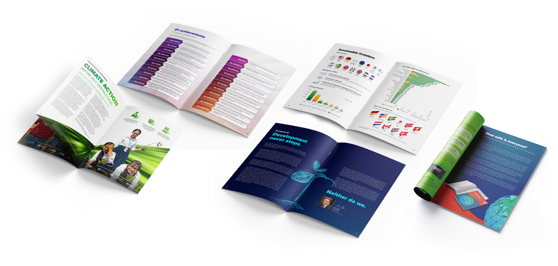 As a member of UNDP’s Brand and Marketing team, I led the design and end-to-end production of the digital Annual Report from 2021 to 2024, delivering four editions aligned with evolving global contexts and organizational themes. The digital reports were published in English, French, and Spanish, while the print editions were produced in all six UN languages, together forming the foundation of UNDP’s annual corporate communications.